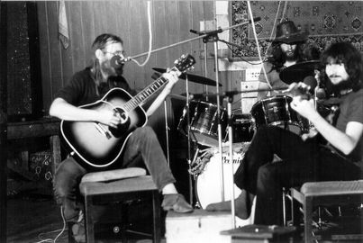 | The rehearsal cottage ("The House") in a huge garden in Amsterdam used by Windy Corner in the seventies. | Windy Corner after 1973; on the left Rob playing on his Levin N-26. |